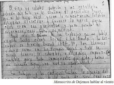 "Juan tenía una letra clarísima. Tú vez que escribía cada letra, letra por letra. Él decía que mientras más lento iba mejor, porque le daba tiempo para ir buscando las palabras. Cuando le hablaban de su adjetivación, de la forma como encontraba la palabra justa, Juan decía: ‘Me da tiempo, por lo despacio que lo hago’ ”.