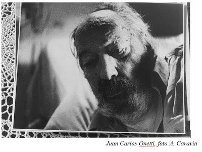 Se levanta, mueve con pasos vivaces y casi saltarines su cuerpo de basquetbolista. Trae un paquete con las últimas fotos que le tomaron a Onetti. Son unas fotos extrañas, de atmósfera triste y pesada, entre sábanas y almohadas. Su mirada es la de un hombre tremendamente digno que ha vivido demasiado.